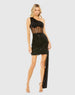 Black One Shoulder Sheer Bustier Side Drape Sequin Dress