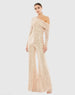 This statement-making jumpsuit is everything! Covered in petite, high-wattage sequins, the body-skimming jumpsuit is styled with a gorgeous pleated collar that slips off the shoulder, long sleeves, and bell-bottom legs. Just add simple heels and let the ravishing one-piece do the talking.