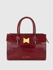 Red Crocodile Leather Tote Bag With Gold Hardware